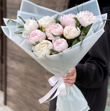 Букет 9 пионов в матовой пленке | Купить в Пирей