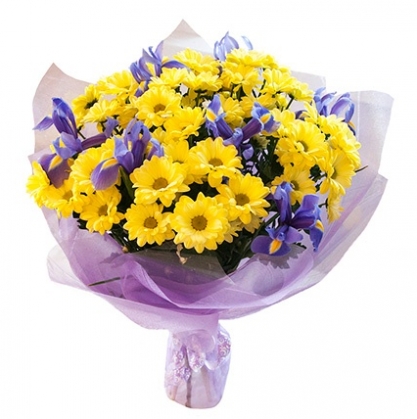 Красочный букет из хризантемы и ириса